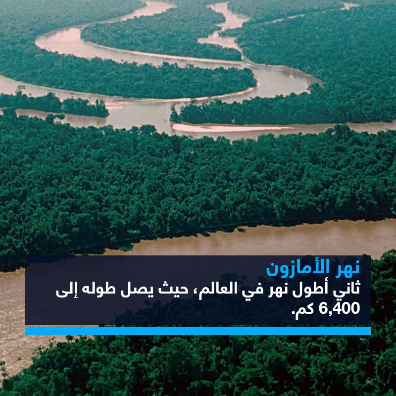 Akhbar أخبار الآن Twitterissa 2 نهر الأمازون ثاني أطول نهر في العالم حيث يصل طوله إلى 6 400 كم